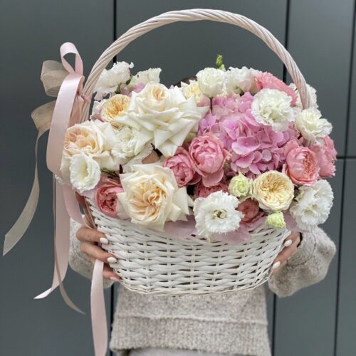 • Romantic baskets with flowers – delicate and airy compositions that create an atmosphere of romance and dreaminess.