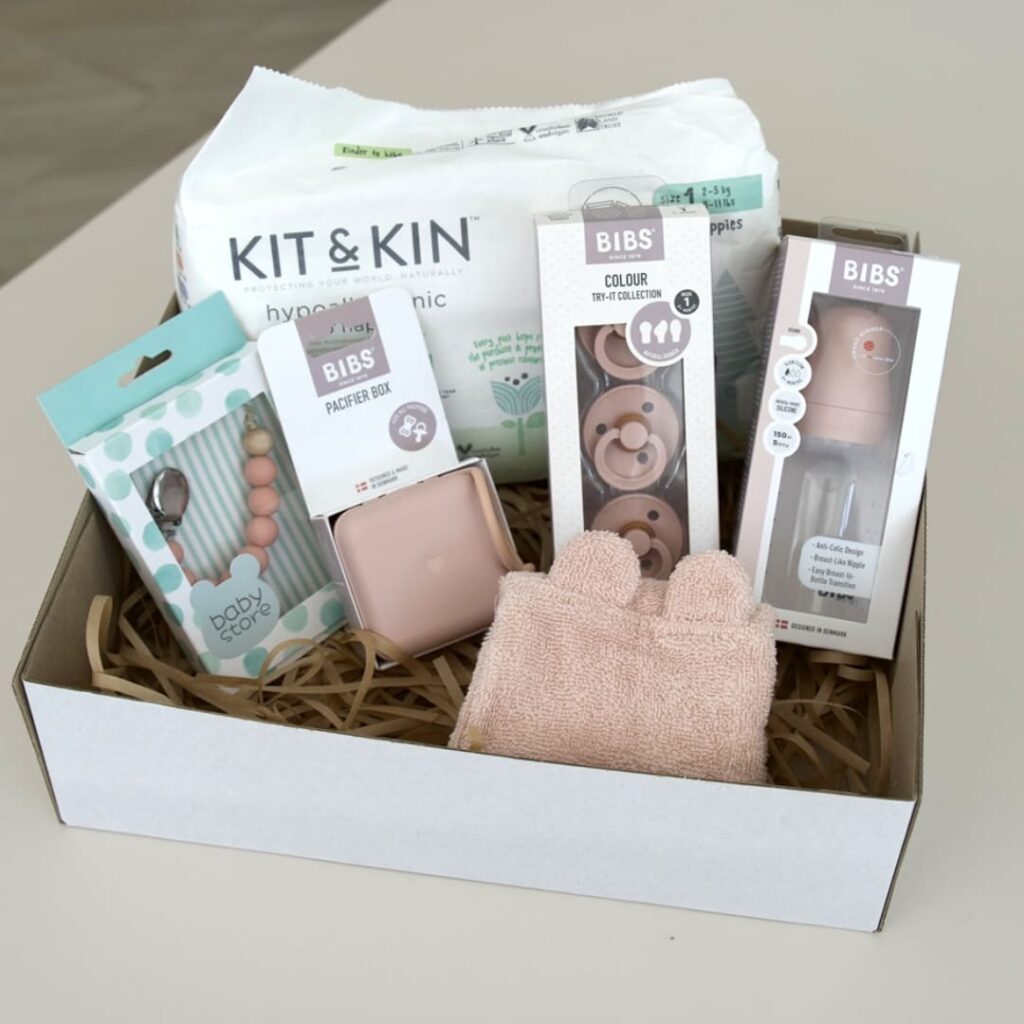 Bouquet "Blush Bloom" and baby girl box "Bundle of Joy"