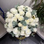 2 150 AEDAn exquisite basket filled with 51 pristine Mondial white roses — a true embodiment of elegance and refinement. These roses are renowned for their large blooms, and a light, almost ethereal fragrance.