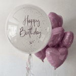 The soft pink heart-shaped balloons create an atmosphere of tenderness and warmth, while the vibrant βHappy Birthdayβ balloon adds a festive touch and highlights the importance of the moment.