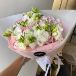 1 150 AEDThis bouquet of freesia, ozotamnus and hydrangea represent luxe and sophistication. These flowers, combined in a bouquet, create an atmosphere of elegance and nobility. The bouquet is surely a wonderful gift for special events or for those who appreciate luxurious and sophisticated life. Our flower workshop BIRDS&FLOWERS offers a huge selection of flowers and designer bouquets. We guarantee fresh flowers and careful treatment of each flower. As self-importers of our flowers, we are the only flower shop in the country that receives flowers by plane.