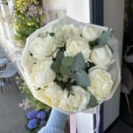 925 AEDA bouquet filled with purity and refined elegance. Snow-white peonies, like petals of frost, embody tenderness and harmony, creating an atmosphere of weightless beauty. This bouquet is a true embodiment of tranquility and sophistication, reminiscent of the first spring days when the world is covered with a light mist and nature blossoms in its purest form.