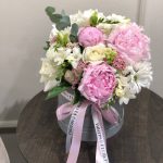 1 175 AEDA flower arrangement in a hat box, consisting of delicate peonies, chrysanthemums, fragrant freesias, eucalyptus and roses. This arrangement has a special charm and style, perfect as an expressive gift or a stylish decorative element. Peonies symbolize prosperity, chrysanthemums – longevity, and freesias – joy and gratitude. The combination of these flowers and the greenery of eucalyptus create an impressive visual effect, personifying elegance and sophistication. In our flower workshop BIRDS&FLOWERS there is a huge selection of flowers and designer bouquets. We guarantee fresh flowers and careful treatment of each flower. Being self-importers of our flowers, we are the only flower shop in the country that receives flowers by plane.