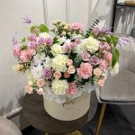 1 750 AEDCharm your loved ones with a delicate and sophisticated flower arrangement in a box consisting of dianthus, spray roses, eucalyptus and chrysanthemums. This white, pink and purple palette creates a calming atmosphere and gives the flower arrangement tenderness and sophistication. Dianthus and spray roses give volume and texture, eucalyptus adds a touch of freshness and aroma, and chrysanthemums create accents and complete the whole arrangement. Choose this flower arrangement to express your love, recognition or simply to create a cozy and romantic atmosphere. Our flower workshop BIRDS&FLOWERS has a huge selection of flowers and designer bouquets. We guarantee fresh flowers and careful handling of each flower. Being self-importers of our flowers, we are the only flower shop in the country that receives flowers by plane.