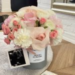 850 AEDThis stylish flower arrangement in a hat box will impress you with its exquisite design. Using dianthus, roses and spray roses, it creates an atmosphere of romance and elegance. This arrangement is ideal as a gift or decor for special events. Our flower shop BIRDS&FLOWERS has a huge selection of flowers and designer bouquets. We guarantee fresh flowers and careful handling of each flower. We import our flowers ourselves and are the only flower shop in the country that receives flowers by plane.