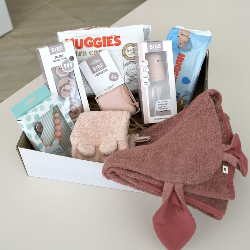 Bouquet "Rosy Dreams" and Newborn Box "Cuddle Cloud"